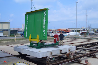 Agora, os equipamentos são transportados da Finlândia por arrastões até ao Porto de Peniche e montados nos Estaleiros Navais da cidade, para daí serem levados para a Almagreira, onde em Abril de 2007 foi instalada a primeira e única máquina “Wave Roller”, a 20 metros de profundidade e a 500 milhas da praia.